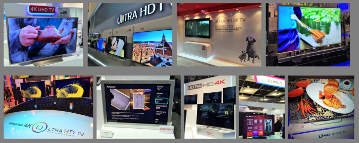 - 4K Displays. Upon stepping off the escalator on the video floor, one is confronted with massive numbers of massive 4K displays. Every manufacturer has displays and touts 4K resolution along with their requisite tricks at upscaling. The prices are still relatively high but the selection is much broader than readily seen in the US. Last year 4K was new at CES and it seems reasonable to suspect that the show floor will be all 4K. As a footnote relative to last year, 3D was downplayed significantly. In addition, there are numerous 4K cameras on sale now, more so than the US.