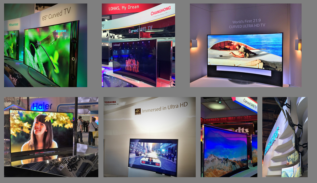 Again, as product managers we see a hardware technology appear because it can but the use case hasn’t yet been determined. Like the first color computer screens that many argued against claiming software was inherently black and white, curved screens are about new use cases not just curving a football game. One view around CES and you can easily see scenarios such as signage that become incredibly cool. Today signs that are interactive are much cooler than static signs (or menus and more). Signs that need to be on curved surfaces are static and boring. Maybe curved displays will be a niche at home and find themselves useful only for commercial signs. I’m going to bet on the creativity of content and product people to develop new use cases and before we know it curved screens will be ubiquitous as “flat screens”.