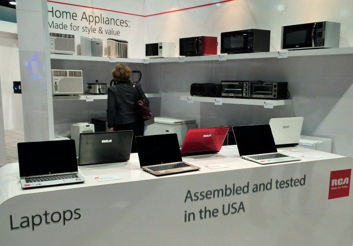 PCs. While Microsoft, HP, Dell, and others having stopped exhibiting on the main show floor can easily be responsible for the lack of PCs, the reality is that PCs are part of the fabric of the technology world, but not the front and center consumer electronics device. The reality of the floor is that PCs were not part of the use cases or scenarios and the modern mobile platforms have taken over. This image below sort of summed it up. Here we had RCA showing their new PCs (fairly thick and heavy laptops) in a booth with toasters and dorm refrigerators. Yet we all know, today, the products at the show were built using PCs, the businesses are run with PCs, and even the show itself would not be possible without PCs. The focus is just changing.