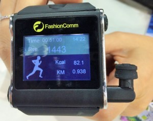 There’s no need to document the dozens of communication wearables on display. Most shared the same basic characteristics, with Pebble being the established player that has already earned an enthusiastic base of early adopters. These pair with a mobile device, share notifications, and permit some level of interactivity and apps/ecosystem. Some do less and trade off towards a longer battery life by doing less. Others try to subsume the mobile device entirely and act as a phone (see below).